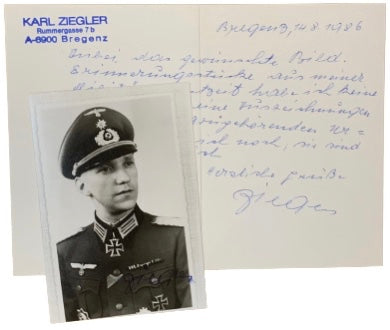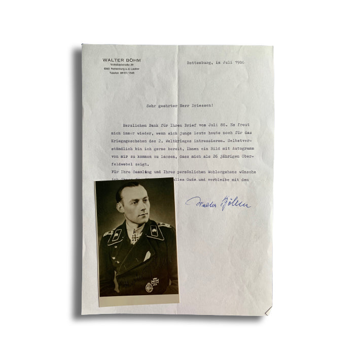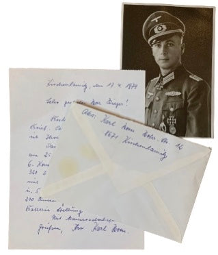 A selection of authentic and hand signed rare Knight's Cross holder photographs.  All postwar autographed, many of which come with the letter, envelope and other items sent by the Knight's Cross holder.